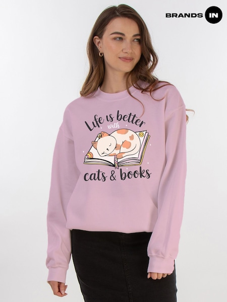 Brands In Pink Life Better Cats And Books Sweat Top