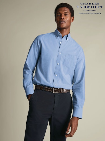 Charles Tyrwhitt Blue Non-iron Button Down Oxford Slim Fit 100% Cotton Shirt