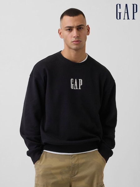 Gap Black Logo Fleece Crew Neck Sweatshirt