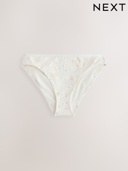Cream Broderie High Leg Bikini Bottoms