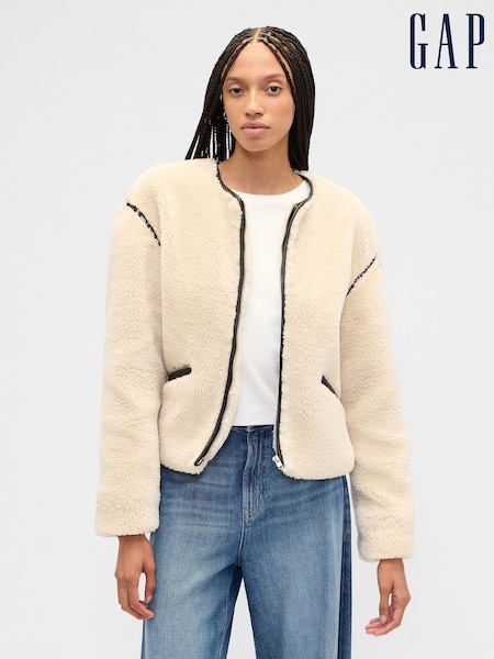 Gap Brown Faux Fur Relaxed Zip Hoodie