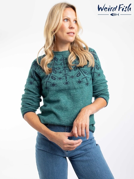 Weird Fish Green Miska Fair Isle Pattern Jumper
