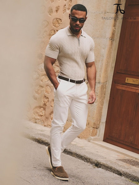Tailored Athlete Natural Muscle Fit Cable Knitted Zip Polo Shirt