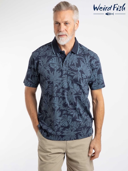 Weird Fish Blue Sarat Printed Polo Shirt