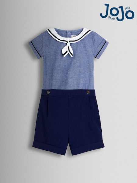 JoJo Maman Bébé Blue 2-Piece Sailor Collar Body & Shorts Set