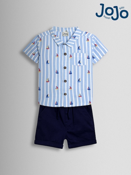 JoJo Maman Bébé Blue 2-Piece Shirt & Twill Shorts Set