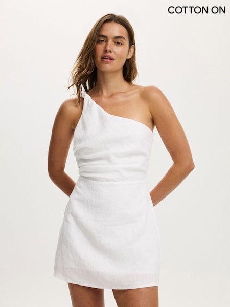 Cotton On White Linen Luxe One Shoulder Dress