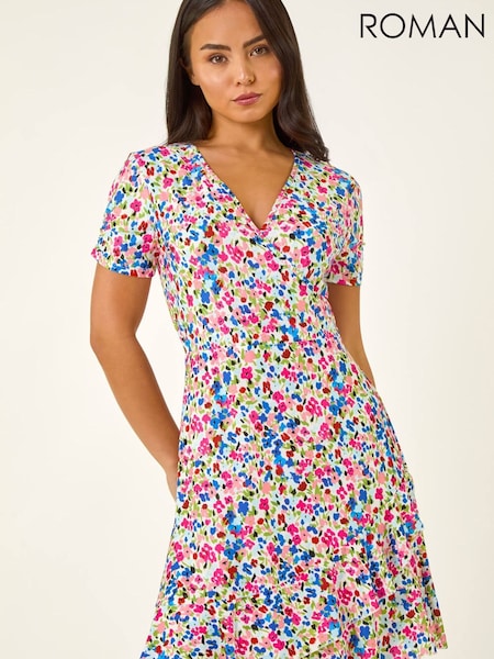 Roman Grey Petite Floral Print Wrap Frill Midi Dress