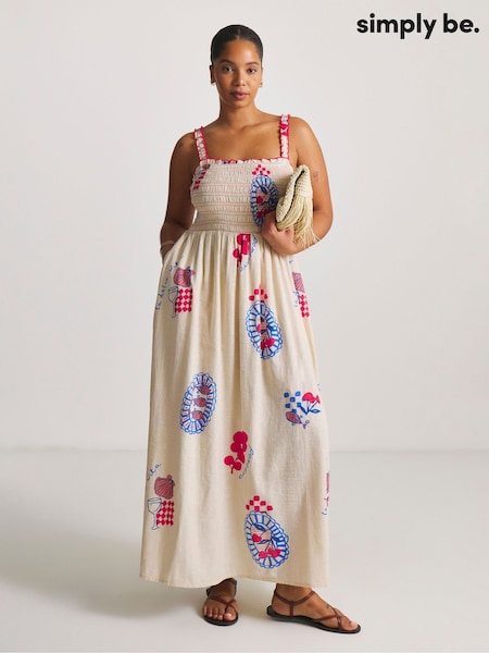 Simply Be White 100% Cotton Floral Broderie Midi Dress