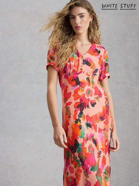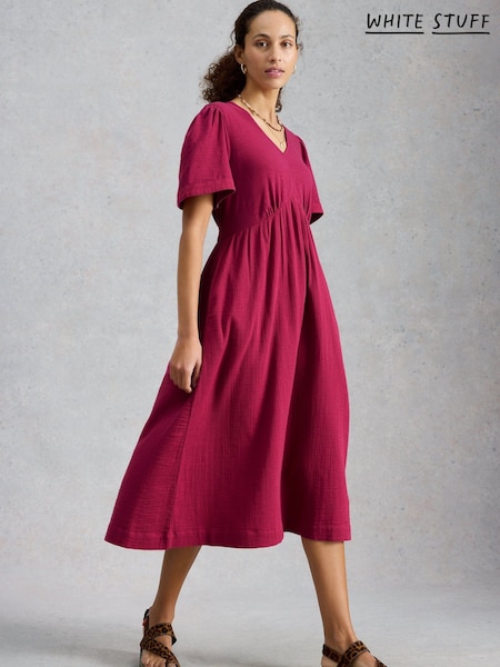 White Stuff Pink Lucy Double Cloth Midi Dress