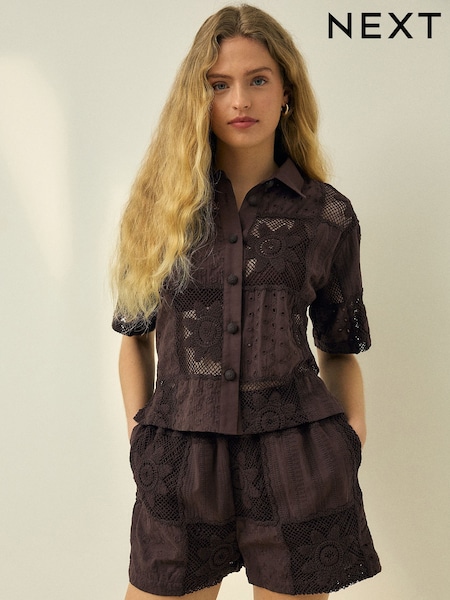 Chocolate Brown N. Premium Crochet Patchwork Shorts
