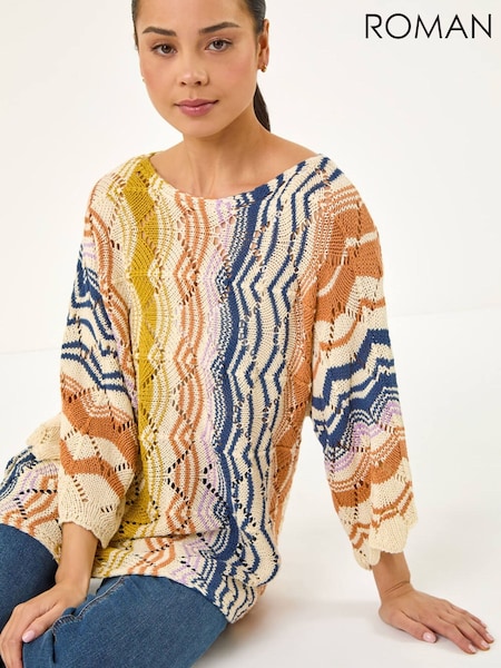 Roman Natural Petite Pointelle Knit Top