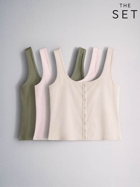 The Set 3 Pack Button Through Vests Khaki Green/Pink/Cream