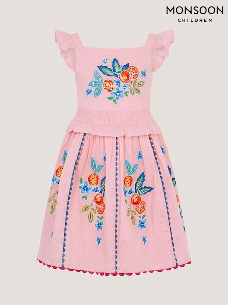 Monsoon Embroidered Fruit Frill Scallop Edge Dress