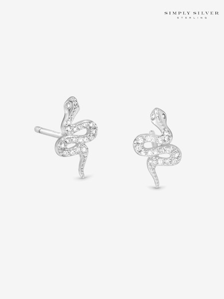 Simply Silver Cubic Zirconia Pave Snake Stud Earrings