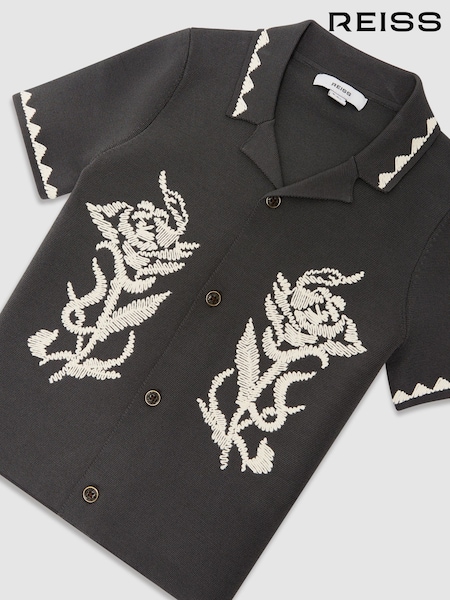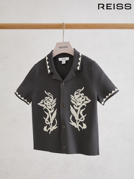 Gris - Camisa de punto de manga corta geométrica (3-16 años)