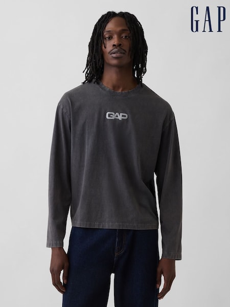 Negro - Gap Relaxed Logo Boxy Long Sleeve T-Shirt