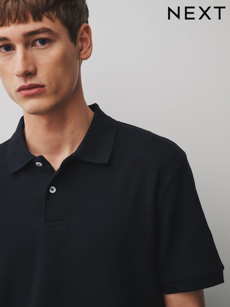 Azul marino - Block Texture Zip Neck Polo Shirt