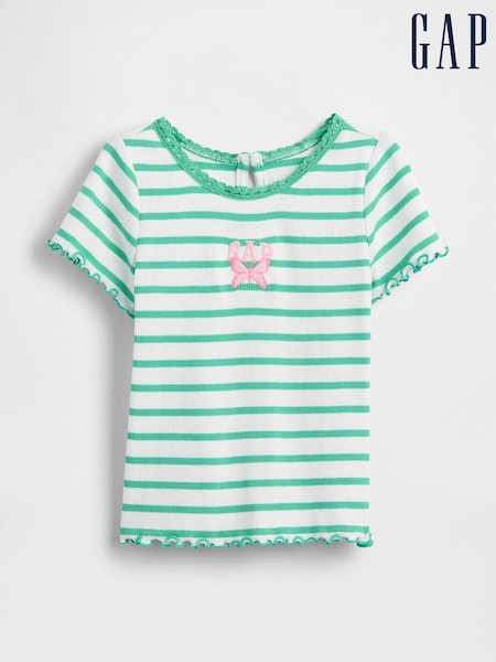 Rayas verdes - Camiseta acanalada con el logotipo bordado de Gap (6 meses-5 años)