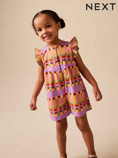 Cuadros multicolor - Mono corto con manga mariposa (3 meses-7 años)