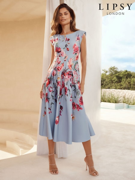 Lipsy Floral Cap Sleeve Fit And Flare Midi Dress