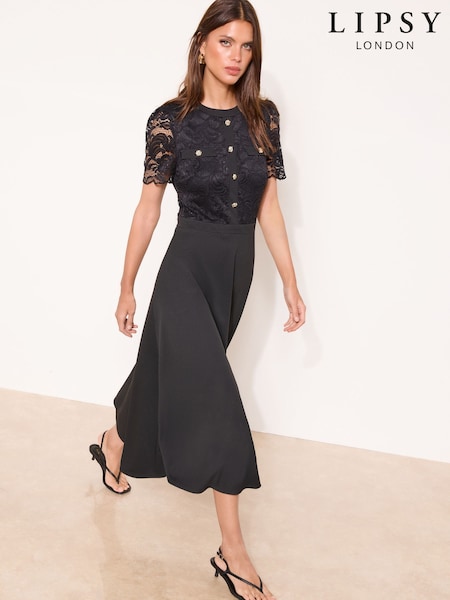 Lipsy Lace Mix Short Sleeve Button Midi Dress