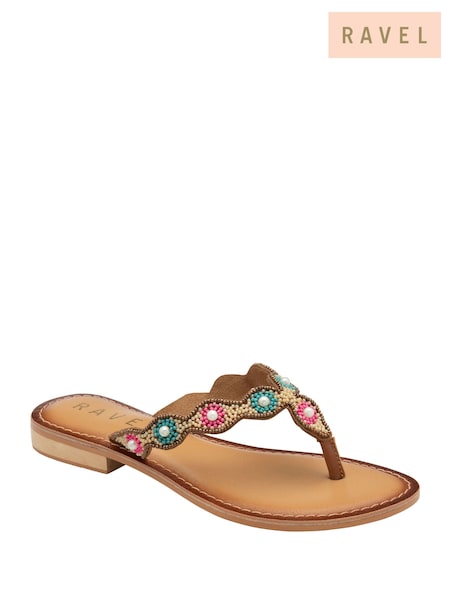 Dorado ante - Sandalias con tira al dedo y detalle de cuentas