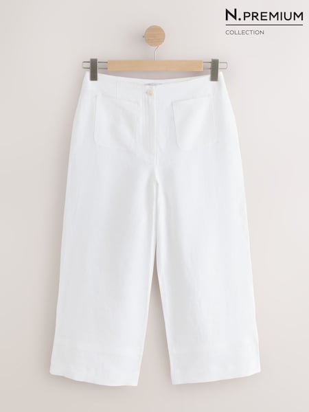 Blanco - N. Premium 100% Linen Crop Wide Leg Trousers
