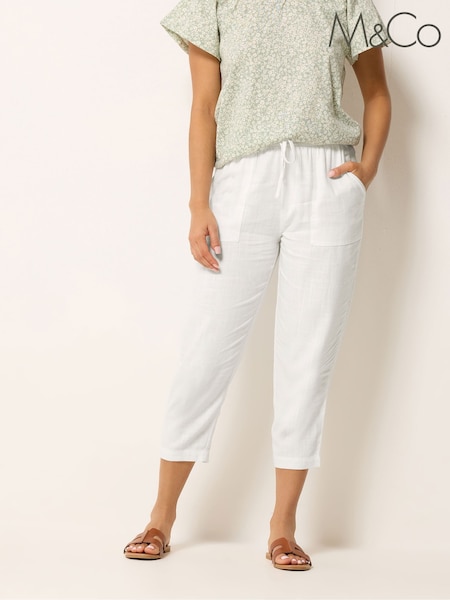 Blanco - M&Co Petite Linen Blend Cropped Trousers