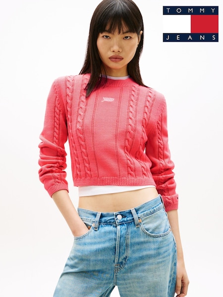 Rosa - Tommy Jeans Logo Embroidery Cable Knit Slim Jumper