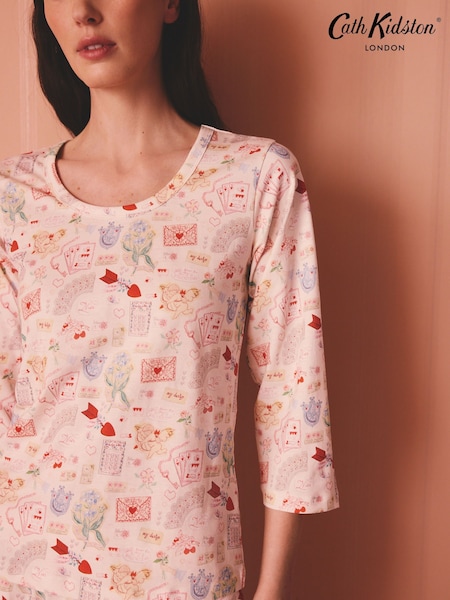 FatFace Pointelle Heart Print Jersey Pyjama Set