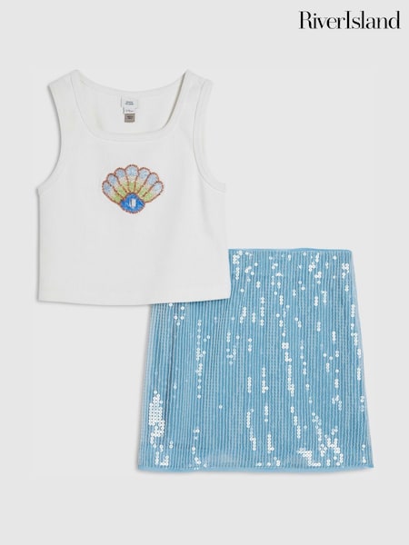 Olivia Rubin Shirred Puff Sleeve Multi Top & Tiered Skirt Set 2 Piece