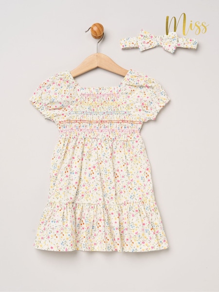 Miss Ditsy Embroidered Smocked Dress With Headband Set
