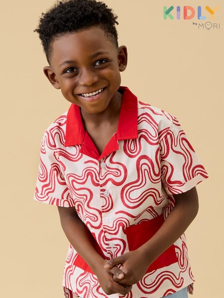 KIDLY by MORI Soft Cotton Poplin Red Swirl Shirt