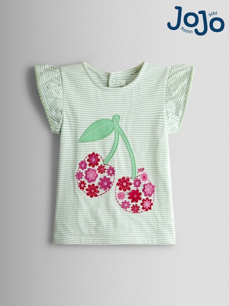 Verde - JoJo Maman Bébé Applique Frill Shoulder T-Shirt