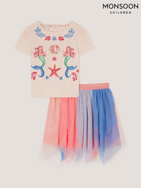 Monsoon Mermaid T-Shirt & Mesh Disco Skirt Set