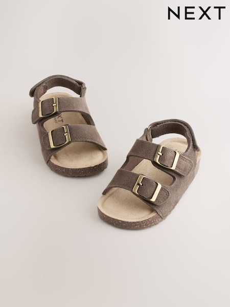 Marrón chocolate - Sandalias con doble tira y suela de corcho