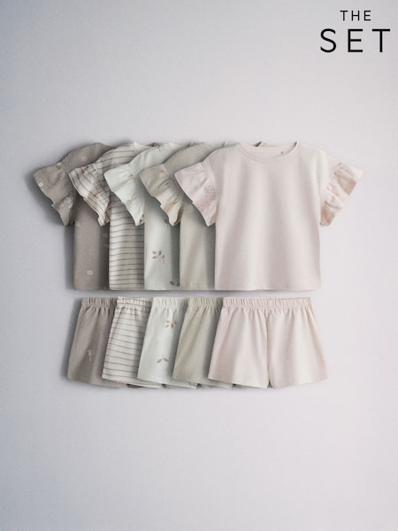 The Set 5 Pack Cotton Jersey Frill Sleeve T-Shirt and Shorts Pyjamas Set