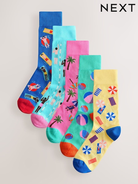 Azul/amarillo/rosa - Pack de 5 calcetines con patrón