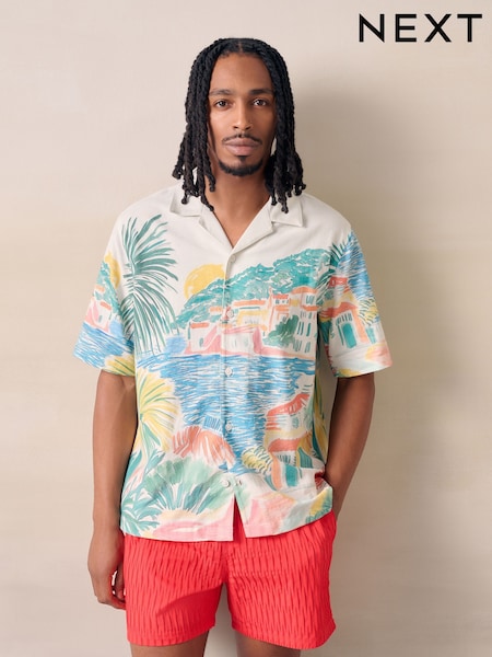 Chelsea Peers Linen-Blend Dune Echo Print Short Sleeve Shirt