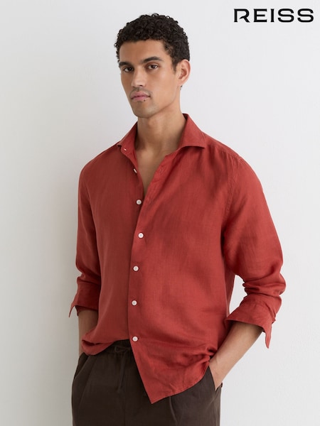 Azul suave - Reiss Supra Lyocell-Linen Short-Sleeve Shirt
