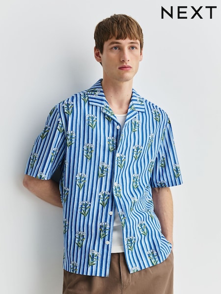 Navy Floral Stripe - Camisa de mangas cortas con estampado