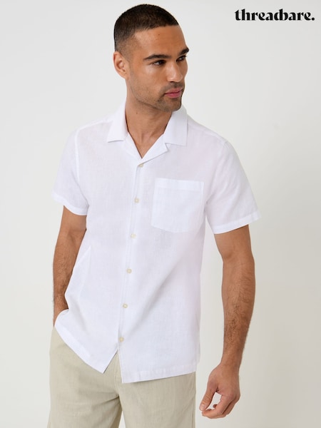 Blanco - Camisa de mezcla de lino y algodón de manga corta de Threadbare