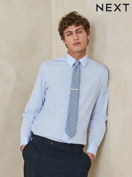 Light Blue/Blue Texture - Conjunto de vestir con camisa, corbata y gemelos