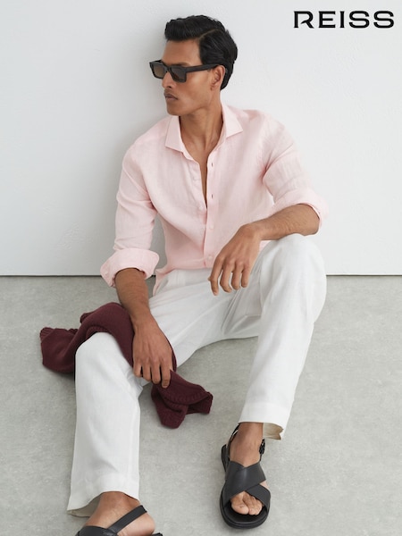 Rosa - Camisa de lino de ajuste regular y cuello italiano de Ruban