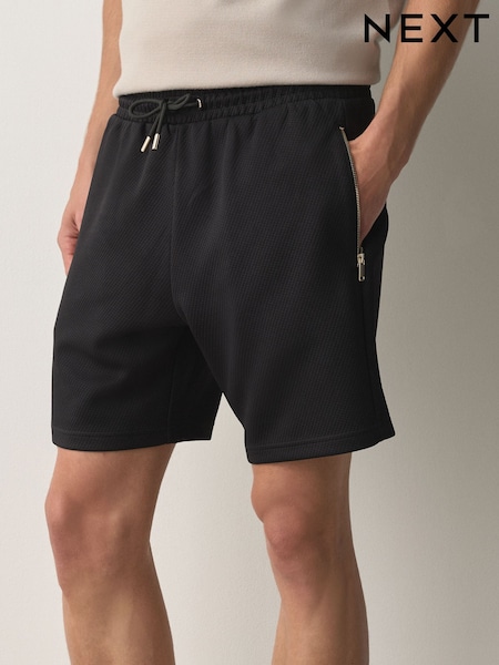 Negro - Textured Jersey Zip Pocket Shorts