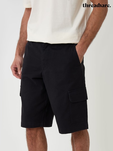 Negro - Threadbare Baggy Fit Cotton Cargo Shorts