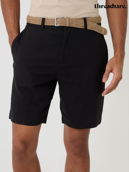 Negro - Threadbare Linen Blend Shorts with Belt