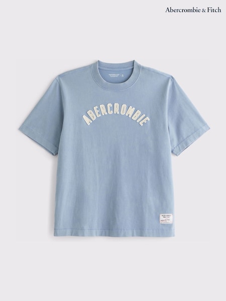Azul - Abercrombie & Fitch Logo Short Sleeve Crew Neck T-Shirt