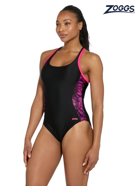 Zoggs Mesh V Back Black Swimsuit with Removable Foam Cup Support